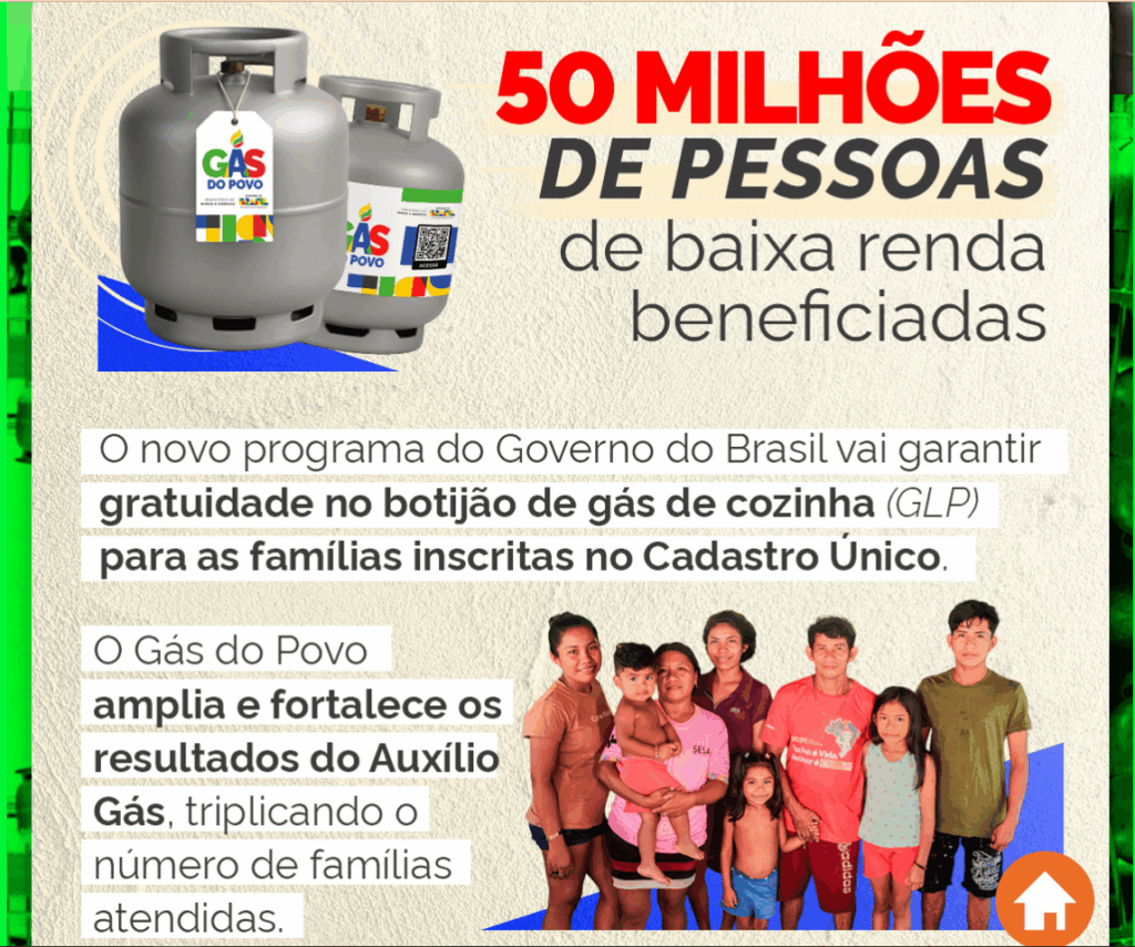 O Programa Gás do Povo representa uma política moderna e sensível à realidade das famílias brasileiras mais vulneráveis. Ao transformar um benefício em dinheiro em acesso direto ao botijão de gás, o programa reduz desperdício, promove saúde, e valoriza a dignidade. Está no horizonte, com previsão até março de 2026, o atendimento a todas as 15,5 milhões de famílias elegíveis.